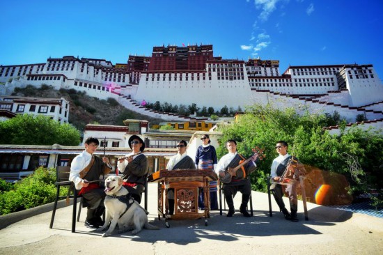 Os membros da banda "Kardag Garbo" posam para uma foto em grupo em frente ao Palácio Potala, em Lhasa, na Região Autônoma de Xizang, no sudoeste da China, em 17 de junho de 2025. (…