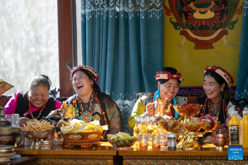 Moradores de Xigaze, na Região Autônoma de Xizang, no sudoeste da China, celebram o Ano Novo dos agricultores no primeiro dia do décimo segundo mês do calendári…