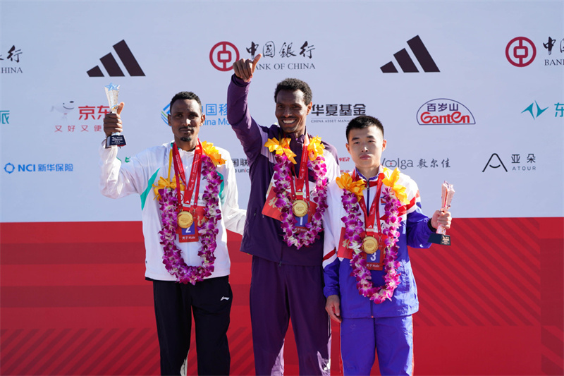 Corredores etíopes coroados na Maratona de Beijing; número recorde de participantes quebra a barreira das 3 horas