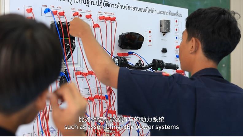 A segunda fase da Oficina Lu Ban na Tailândia abriu um curso de tecnologia para veículos de novas energias. A Faculdade Técnica Profissional Bohai de Tianjin forneceu amplo equipamento e patrocinou treinamento para professores tailandeses na China, permitindo-lhes dominar conhecimentos e tecnologias de ponta.